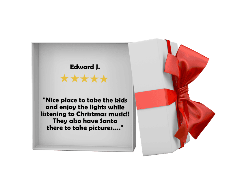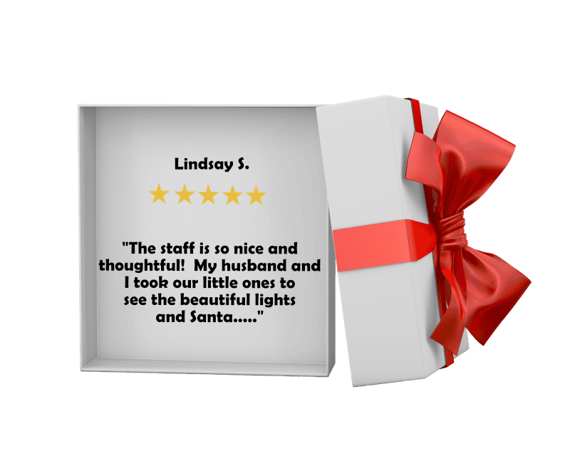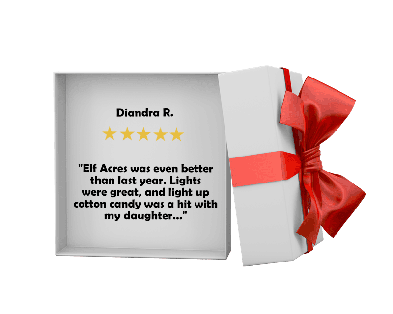 Get ready to experience the magic of the holiday season as you wind your way thru our 1 mile trail of Christmas lights and animated displays and sing along to your favorite Christmas music on our Elf Acres radio station! Then come play at Santa’s Village, a walkable area where you can see a synchronized light show on 3 mega trees, take a photo with Santa, delight in our delectable treats and shop cool light up toys and gifts. It’s the perfect family tradition!
