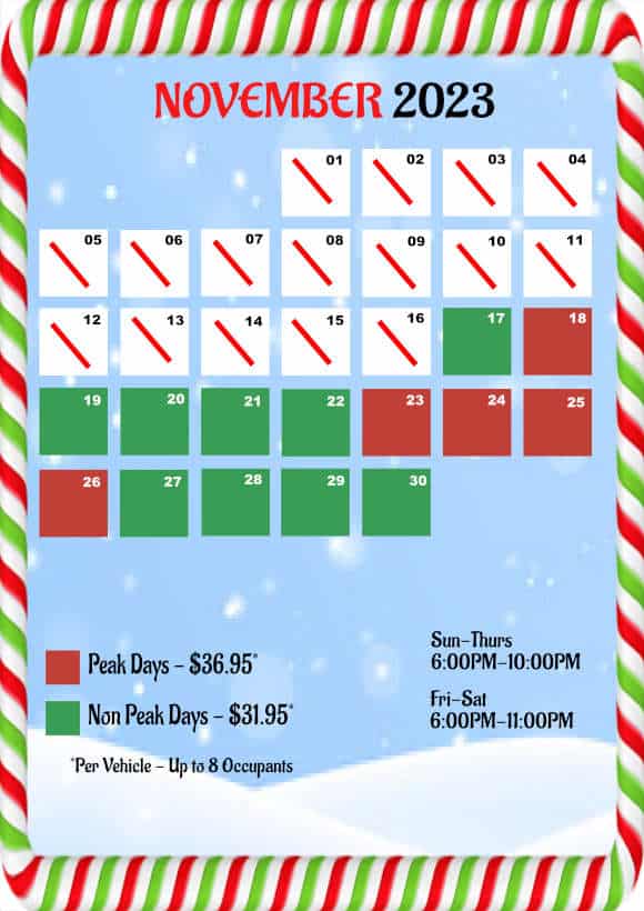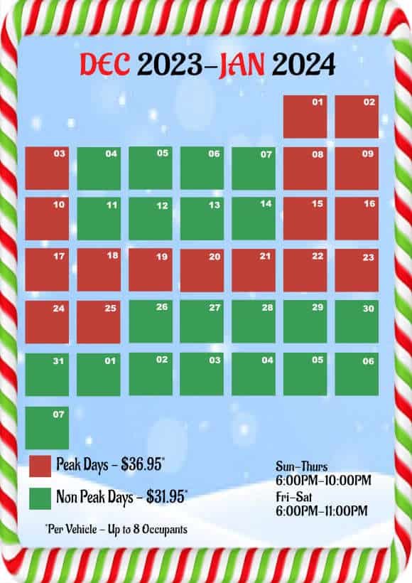 - Christmas Week Dec. 17th – 25th: 6:00PM – 10:00PM